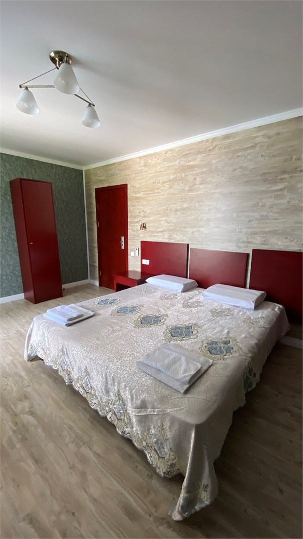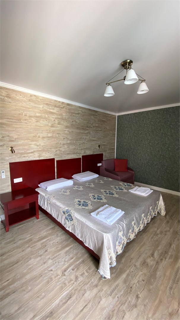 Площадь номера - 26 кв.м. 1 комната. 3 осн. места. спальные места: 2-спальная кровать + диван-кровать. В номере: телевизор; кондиционер; душ; туалет; фен; тапочки; туалетные принадлежности; мини-холодильник.